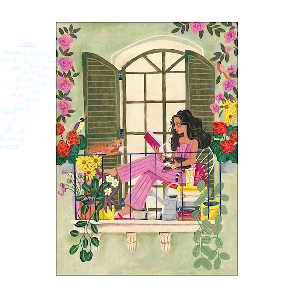 Caroline Bonne Müller poster 30x40 cm woman reads on balcony with cats från Poster & Frame. Caroline Bonne Müller, en schweizisk konstnär och illustratör, skapar konst som sprider glädje genom sina färgglada scenarier och kvinnoportätt. Hennes verk, som kombinerar akrylfärg med kritor och färgpennor, omfamnar små ofullkomligheter och ger en unik charm. Poster & Frames samarbeten med konstnärer erbjuder en mängd motiv som sträcker sig från vackra och livliga till djärva och lekfulla. Affischerna trycks på högkvalitativt 230 grams papper med Ultra Coating, vilket garanterar att de behåller sin skönhet och kvalitet i många år framöver.