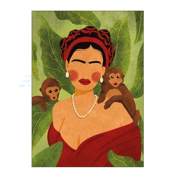Raissa Oltmanns poster 50x70 cm "Frida and Monkeys" från Poster & Frame är ett imponerande konstverk som lyfter fram illustratören och designern Raissa Oltmanns färgstarka och detaljrika stil. Baserad i Hamburg, Tyskland, skapar Raissa visuella mästerverk inspirerade av naturen, djurriket och mänsklig skönhet. Hennes konst, med fokus på feminism, utmanar traditionella kvinnoroller och hyllar starka och självsäkra karaktärer, vilket gör detta konstverk till ett fantastiskt tillskott i vilket rum som helst.