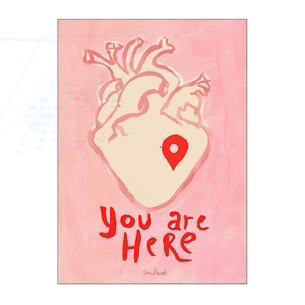 Sissan Richardt-poster 30x40 cm You Are Here från Poster & Frame är ett tankeväckande konstverk som kombinerar enkelhet med djupare mening. Sissan Richardt, en konstnär och illustratör baserad i Aarhus, Danmark, har studerat vid både Designskolen Kolding och La Accedemia di Belle Arti di Brera i Milano. Hennes verk omfattar både abstrakta former i ljusa färger och mer figurativa skapelser som vid första anblick kan verka enkla och eleganta, men som ofta har en djupare och mörkare underton.