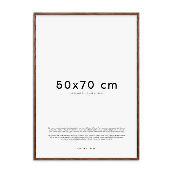Träram 50x70 cm från Poster & Frame är ett utmärkt val för att elegant visa upp dina affischer och konstverk. Dessa kvalitetsramar är tillverkade av närproducerat nordiskt trä och produceras i Poster & Frame:s egen fabrik i Danmark. Genom att ha full kontroll över hela produktionskedjan kan Poster & Frame säkerställa högsta kvalitet och hållbarhet i varje ram, samtidigt som de aktivt arbetar för att minska sitt klimatavtryck. Denna lokalt producerade ram kombinerar skandinavisk design och hållbarhet, vilket gör den till ett perfekt komplement för dina konstverk.