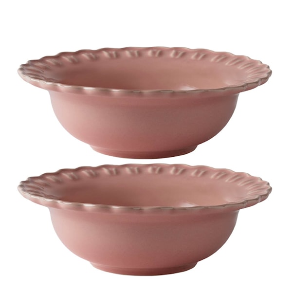 Tulipa djup tallrik på 17 cm i 2-pack från PotteryJo, är en liten och charmig skålformad tallrik med vågig kant och tulpanrelief. Den är handgjord i Portugal och passar perfekt till små rätter, förrätter eller efterrätter.