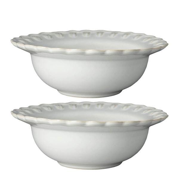 Tulipa djup tallrik på 17 cm i 2-pack från PotteryJo, är en liten och charmig skålformad tallrik med vågig kant och tulpanrelief. Den är handgjord i Portugal och passar perfekt till små rätter, förrätter eller efterrätter.