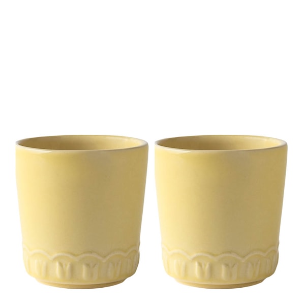 Upptäck PotteryJo TULIPA kopp 20 cl i 2-pack – en stilren kopp utan öra, tillverkad i tåligt stengods. Det vackra tulpanreliefet nedtill och den enkla, organiska formen ger ett rofyllt uttryck och en skön känsla i handen.
