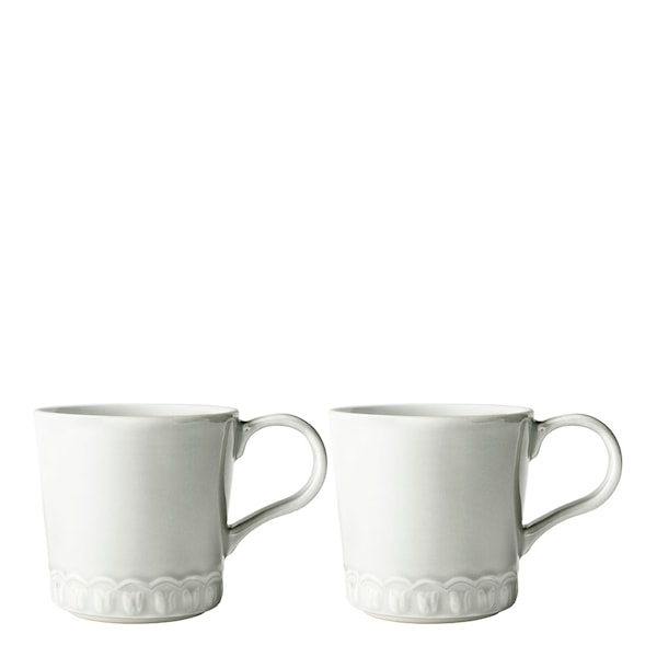 Två koppar på 40 cl med handtag från Tulipa-serien av PotteryJo är gjorda med en fantastisk glasyr och är perfekta som kaffe latte- eller tekoppar. Dessa koppar är vackert handgjorda med gjutmetoden på PotteryJos fabrik. De har en vacker tulpanpräglad botten och ett stort och bekvämt handtag för en behaglig upplevelse vid servering.