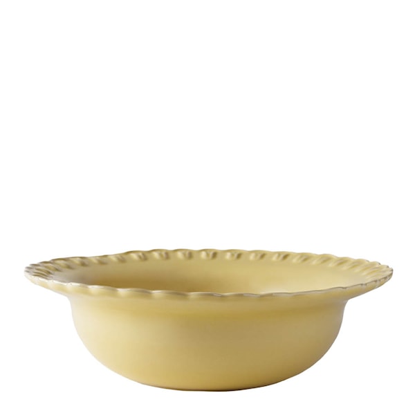 Tulipa serveringsskål med en diameter på 30 cm från PotteryJo, är en generös skål i stengods med vågig kant och detaljrikt tulpanmönster i relief. En handgjord favorit som förenar estetik och funktion.