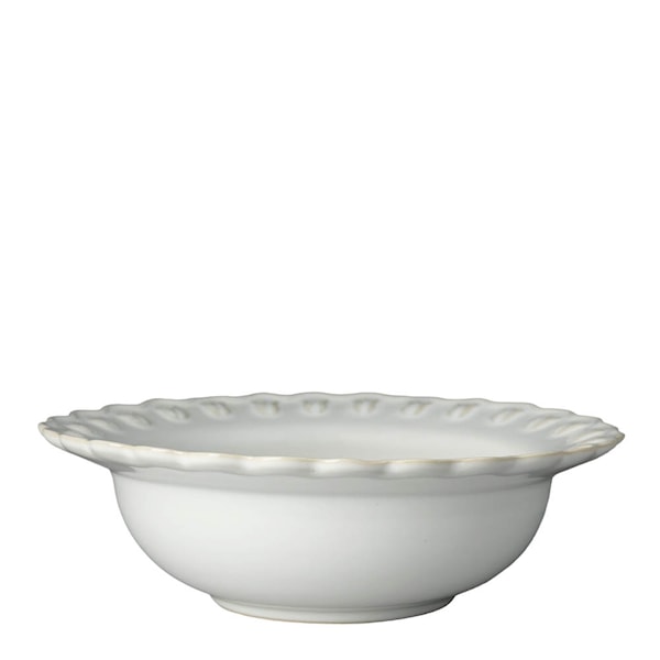 Tulipa serveringsskål med en diameter på 30 cm från PotteryJo, är en generös skål i stengods med vågig kant och detaljrikt tulpanmönster i relief. En handgjord favorit som förenar estetik och funktion.