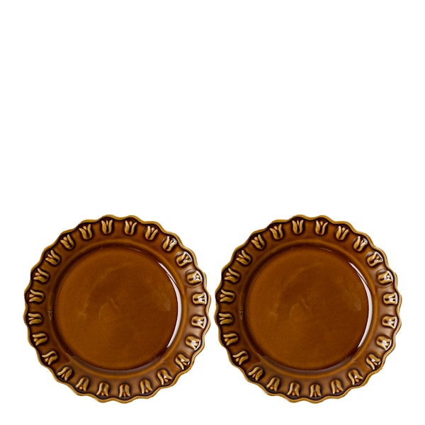 Två desserttallrikar på 20 cm från Tulipa-serien av PotteryJo. Utförda i en glasyr som passar perfekt till flera av PotteryJos andra kollektioner för att blanda olika mönster. Denna kollektion är handgjord i stengods i Portugal.
