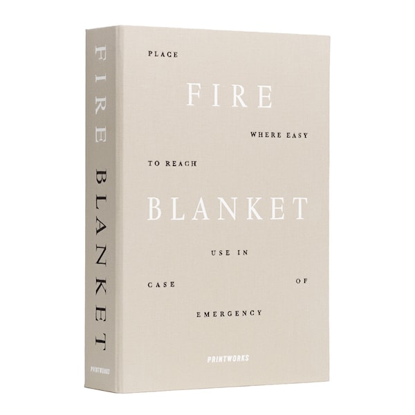 Det stilrena fodralet – utformat som en dekorativ coffeetable-detalj – döljer en brandfilt som enkelt kan dras ut vid behov för att släcka mindre bränder. En diskret och praktisk lösning som gör brandskydd lättillgängligt utan att störa hemmets estetik.