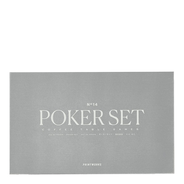 Classic Spel Poker Set från Printworks kombinerar stil och spänning i ett elegant set. Med professionella spelkort och pokermarker har du allt du behöver för att organisera en minnesvärd spelkväll. Satsen innehåller även instruktioner på engelska, franska och tyska.