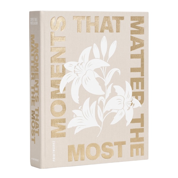 The Moments That Matter the Most fotoalbum från Printworks är ett stilfullt och tidlöst album designat för att bevara de viktigaste ögonblicken i ditt liv. Med sitt eleganta tygomslag och guldfolietext är detta album ett vackert sätt att lyfta fram dina minnen.
