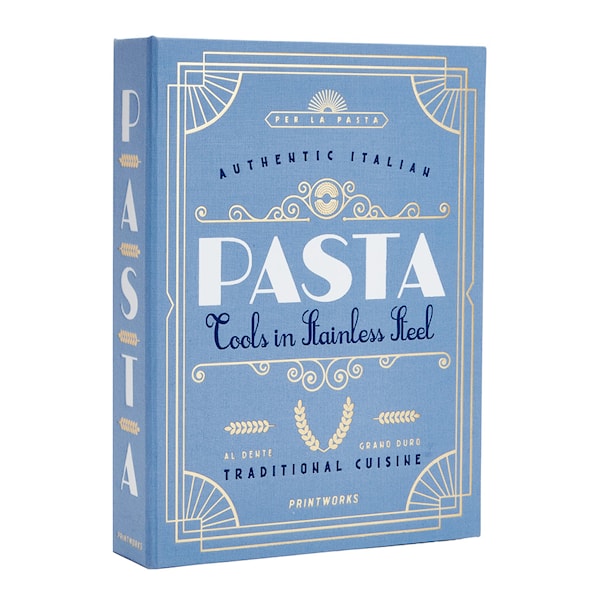 Essentials pastaset från Printworks. Setet är elegant designat och presenterat i en stilren bokliknande låda, perfekt för att dölja verktygen på ett diskret och smakfullt sätt. När lådan öppnas hittar du allt du behöver för en lyckad pastamiddag.