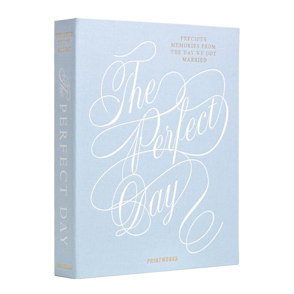 Bevara ögonblicken från den stora dagen med The Perfect Day bröllopsalbum från Printworks i elegant ljusblå design.