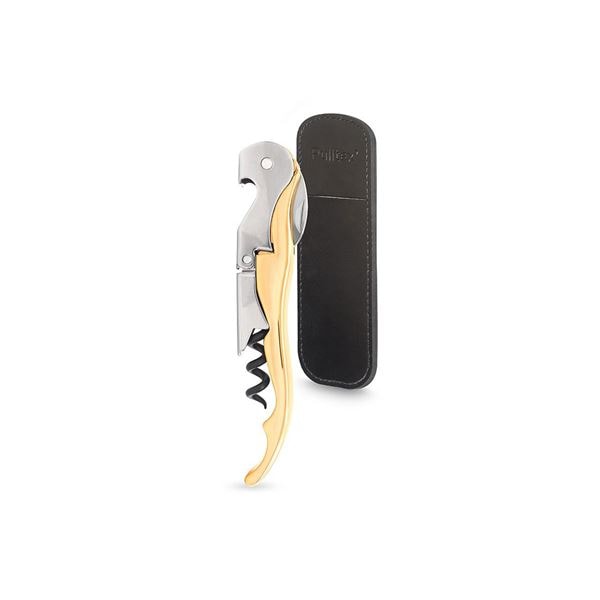 Pulltex vinöppnare med den patenterade tvåstegs hävarmen har en teflonbelagd korkskruv som gör det lättare att dra ur korken, oavsett om den är av kork eller plast, utan att få ”smulor” i vinet.