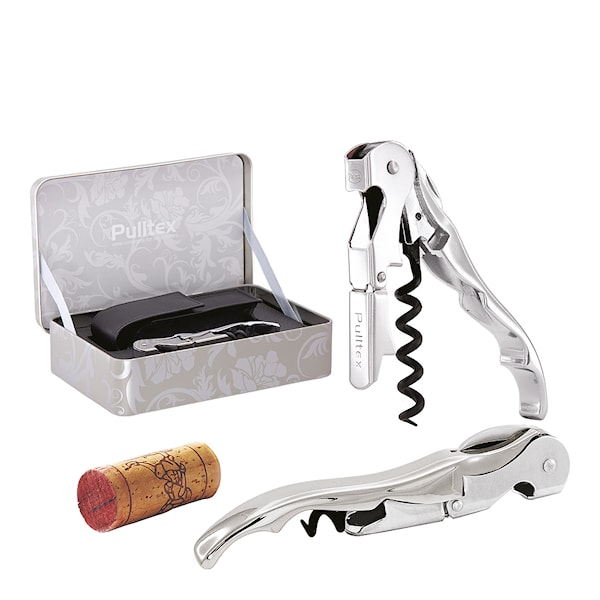 Den perfekta presenten till vinälskaren. Pulltex vinöppnare med den patenterade tvåstegsarmen och en konformad, teflonklädd korkskruv som gör det lätt att öppna vinet utan att det blir korksmulor i flaskan. Ett svart läderfordal medföljer, fäst det enkelt i ditt skärp för att alltid ha vinöppnaren nära till hands. Kommer i en fin presentförpackning.