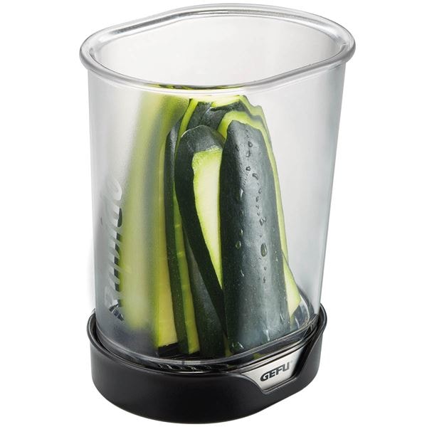 GEFU Rapido multiskärare med behållare gör det snabbt och enkelt att skiva frukt och grönsaker i jämna 4 mm-skivor. Med sylvassa blad i japanskt stål och en smart uppsamlingsfunktion får du ett rent och effektivt resultat varje gång.
