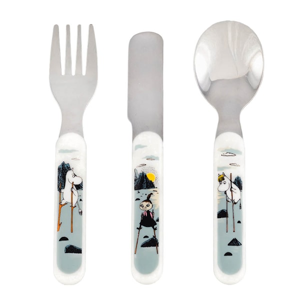 Rätt Start Mumin barnbestick 3 delar Kobbar & Skär är ett barnbestick utformat för små barn som lär sig äta själva. Besticken har motiv från Muminserien Holmar & Skär och en storlek som passar små händer.