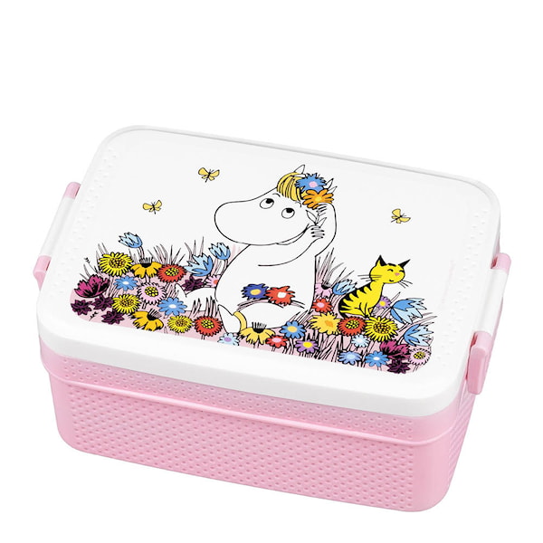 Rätt Start Mumin matlåda Äng rosa är både funktionell och dekorativ. Med ett insatsfack som ger två rum och ett lock som kan justeras i två lägen med tryckknappar, blir den lätt att anpassa efter behov.