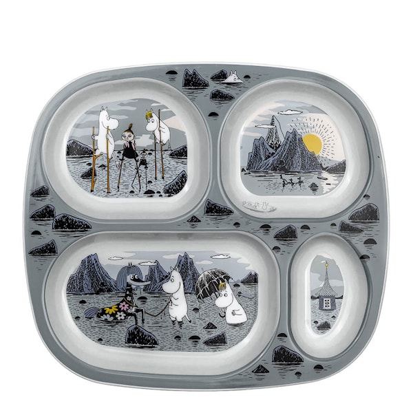 Tallriken är tillverkad i slitstarkt RPET som tål diskmaskin och är framtagen för att klara vardagens slitage. Det charmiga Mumin-motivet med inspiration från "Kobbar och skär" skapar en rogivande stämning vid matbordet.