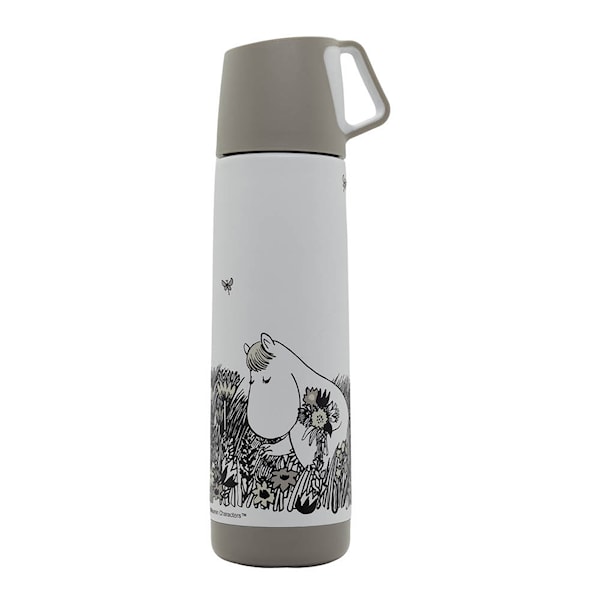 Mumin termos Graphic vit/svart från Rätt Start är en stilren och funktionell termos i rostfritt stål. Med en kapacitet på 0,5 liter är den idealisk för både varma och kalla drycker, vare sig du är på vinterutflykt eller en dag på stranden.