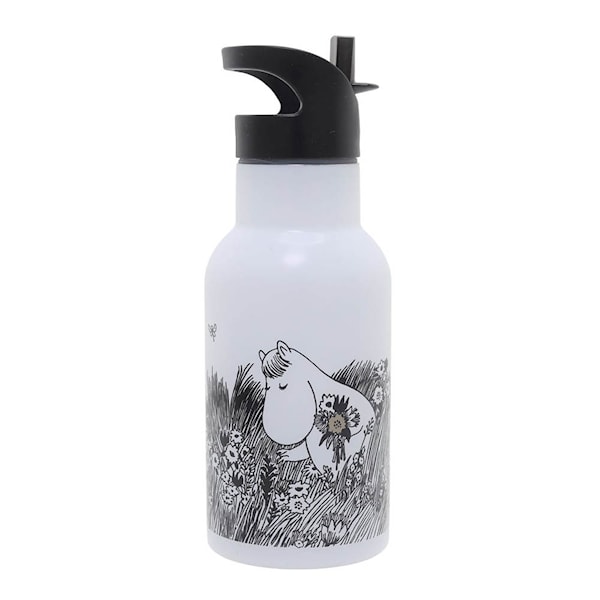 Mumin vattenflaska från Rätt Start är en stilren och slitstark termosflaska tillverkad av högkvalitativt stål. Med en kapacitet på 0,34 liter och en termosfunktion håller den drycken varm eller kall – perfekt för skola, förskola och utflykter.