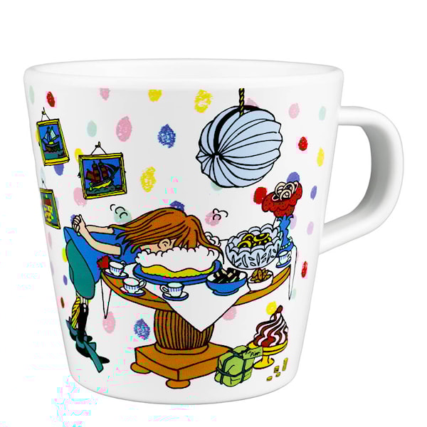 Rätt Start Pippi mugg med handtag 20 cl Födelsedag är utformad för små barn som håller på att lära sig dricka själva. Muggen är lätt att greppa tack vare det stabila handtaget och har en storlek som passar perfekt i små händer. Tillverkad i slitstarkt RPET och dekorerad med färgglada motiv från Pippi Långstrumps födelsedag – en rolig detalj vid varje måltid.