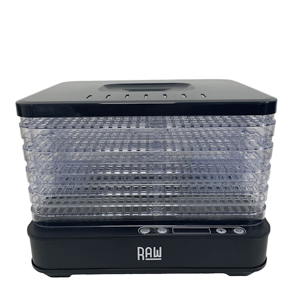 RAW Dehydrator DH6 är en kraftfull svamptork och frukttork som ger dig kontroll över hela torkprocessen. Med 6 hyllor och 0,48 m² torkyta kan du enkelt förädla allt från grönsaker och bär till kött, svamp och örter – helt på dina villkor.