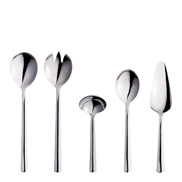 RAW serveringsset 5 delar från Aida är ett elegant och praktiskt set med köksredskap som gör serveringen både enkel och stilfull. Setet innehåller allt du behöver – salladsset, såsslev, potatissked och tårtspade – och blir ett naturligt komplement till ditt RAW-bestick. Varje del är tillverkad av rostfritt stål med en vacker yta som finns i flera färger, så att du enkelt kan matcha med resten av dukningen.