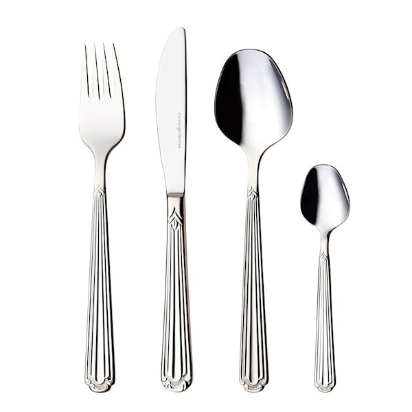 Hardanger Bestikk Renessanse Bestickset 24 delar är ett elegant och tidlöst set för sex personer, formgivet av Haakon Amundsen 1978. Inspirationen hämtas från 1400-talets Europa, vilket ger besticken ett dekorativt uttryck som förhöjer varje dukning – från vardagsmiddagen till fest.