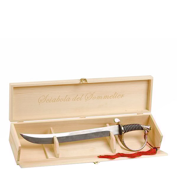 Vid korrekt utförd sabrering slås flaskhalsen av i ett rent snitt, och tack vare det inre trycket i flaskan följer inget glassplitter med i drycken. Sabeln levereras i en exklusiv trälåda som gör den till en självklar gåva till någon som uppskattar det högtidliga och det vackra i festens små ritualer.