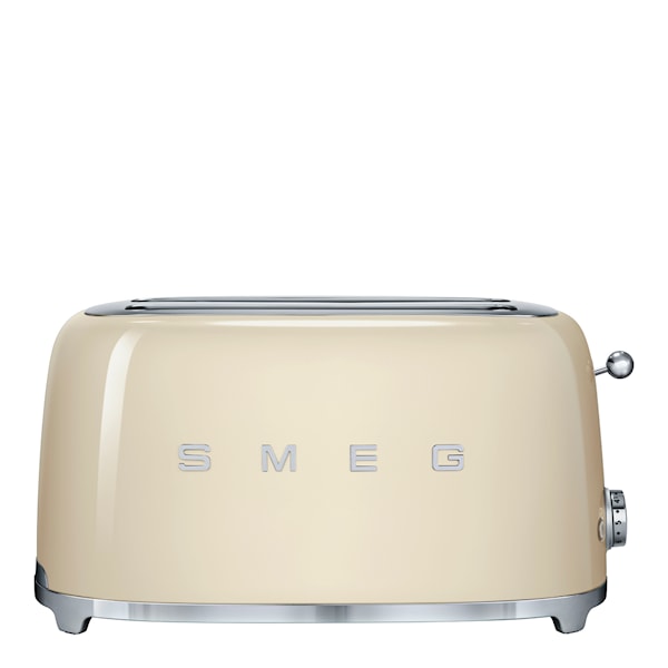 SMEG TSF02 brödrost i klassisk 50-talsdesign kombinerar form och funktion i ett rymligt och stilfullt paket. Med plats för fyra skivor samtidigt – eller två avlånga – passar den perfekt för både vardag och helg.