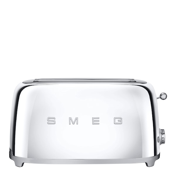 SMEG TSF02 brödrost i klassisk 50-talsdesign kombinerar form och funktion i ett rymligt och stilfullt paket. Med plats för fyra skivor samtidigt – eller två avlånga – passar den perfekt för både vardag och helg.