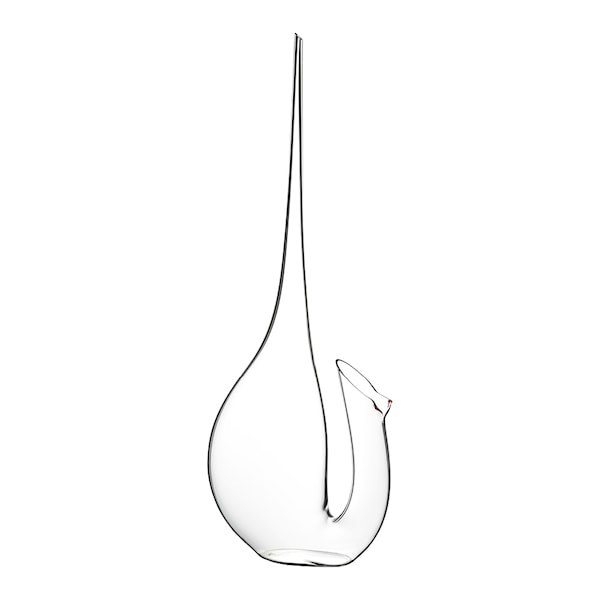 Riedel Vitis karaff är en perfekt balans mellan funktionalitet och konstnärlig finess, inspirerad av påfågelns elegans. Denna karaff, med sin unika och slående siluett, är prydd med två distinkta röda "ögon" som ramar in den näbbformade öppningen, vilket gör den till en visuell höjdpunkt vid varje bord. Designad av Maximilian J. Riedel, är karaffen inte bara en estetisk fröjd utan förbättrar även hällningsupplevelsen, vilket återspeglar den exceptionella hantverksskicklighet som Riedels glasblåsare besitter. Den långa, smala halsen, som påminner om den ikoniska Swan-karaffen, möjliggör en precis och graciös upphällning, även från ett avstånd, vilket gör den särskilt uppskattad bland sommelierer.
