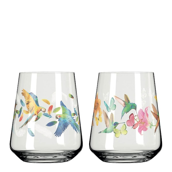 Upplev sommar och italiensk charm med Sommerrausch NO: 3&4 vattenglas från Ritzenhoff – 2-pack à 50 cl. Glasen är tillverkade i Marsberg, Tyskland och pryds av mönster inspirerade av sommarens färger och italiensk estetik.