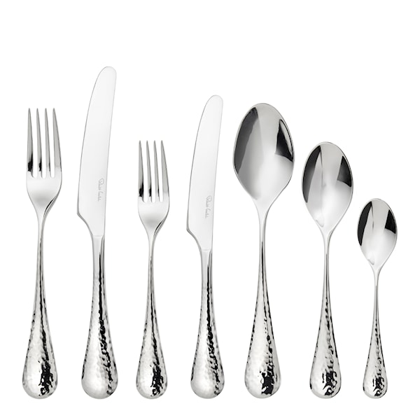 Besticksetet Honeybourne i 42 delar från Robert Welch är perfekt för sex personer och ger bordet en elegant touch. Bestickens klassiska design kombineras vackert med det moderna handtaget som pryds av ett hamrat mönster, inspirerat från silversmedens hammarteknik.