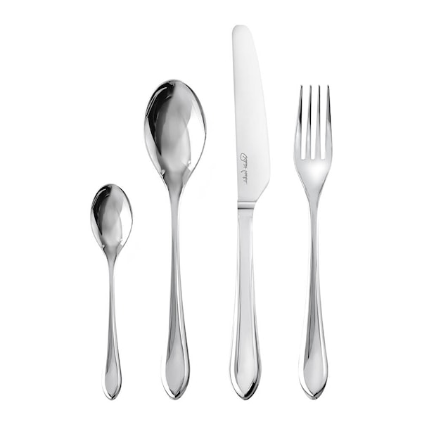 Materialet, 18/10 rostfritt stål, är både tåligt och diskmaskinssäkert, vilket gör att besticken håller sin fina glans år efter år. Den genomtänkta utformningen ger en skön tyngd och ett behagligt grepp som uppskattas vid varje måltid.