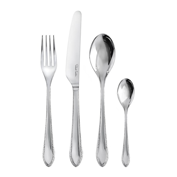 Kemble Texture bestickset 24 delar stål från Robert Welch kombinerar klassisk form med en diskret textur på handtagen som ger både karaktär och funktion. Den taktila ytan bidrar till ett tryggt och bekvämt grepp, samtidigt som den skapar ett modernt uttryck på bordet.