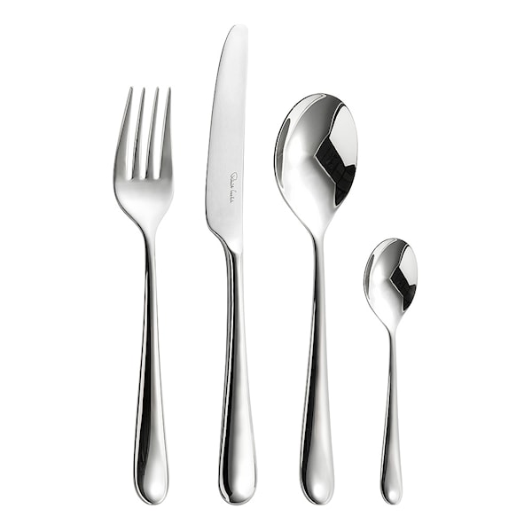 Kingham bestickset i 24 delar, designade av Robert Welch. Klassisk och mångsidig design, perfekt för att komplettera all bordsdukningar både vardag som fest. Tillverkade av 18/10 rostfritt stål av hög kvalitet. Knivbladen är gjorda av ett speciellt härdat rostfritt stål för att ge bästa möjliga skärförmåga.