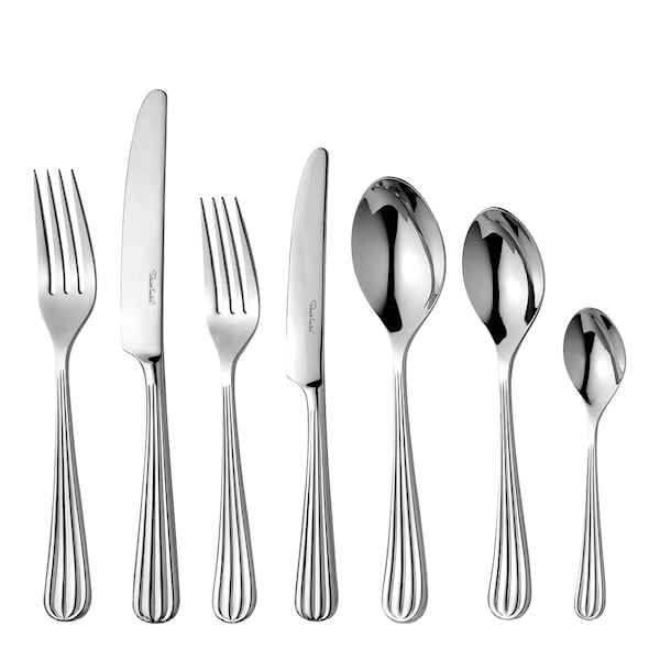 Palm bestickset i 42 delar från Robert Welch är en perfekt kombination av funktion och elegant design. Inspirerad av mönstret i tropiska palmblad, har Palm Bright-serien ett unikt uttryck med ingraverade spår som skapar ett spännande spel mellan ljus och skugga. Detta 42-delade set, tillverkat av högkvalitativt 18/10 rostfritt stål med en spegelpolerad finish, tillför borddukningen en känsla av lyx och finess.