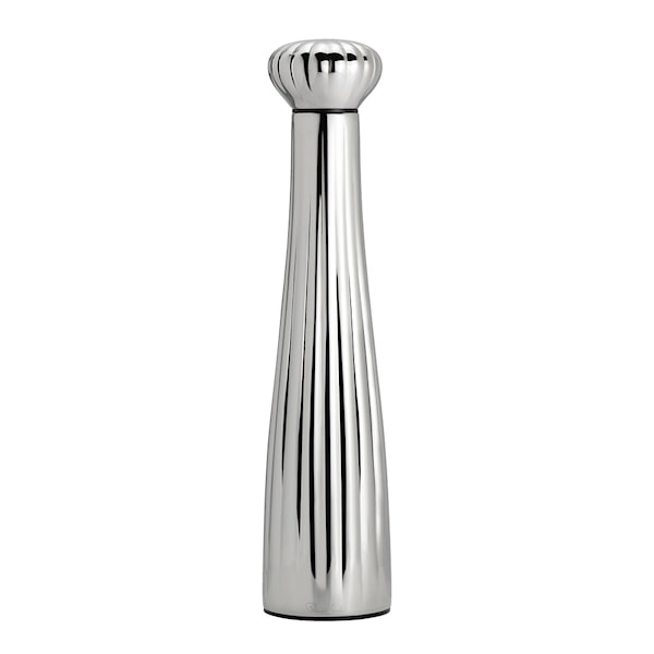 Palm pepparkvarn stor från Robert Welch är en imponerande kombination av funktionalitet och tidlös elegans. Denna stora kvarn, tillverkad av robust 18/10 rostfritt stål med en spegelpolerad finish, har ett distinkt räfflat mönster som ger ett iögonfallande uttryck. Med sin ståtliga höjd på 31,2 cm är kvarnen både ett praktiskt verktyg och en dekorativ mittpunkt, perfekt för både kök och matbord.