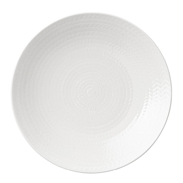Rörstrand Blå Eld tallrik 19 cm vit är en stilren assiett i fältspatporslin från den klassiska servisen Blå Eld, formgiven av Hertha Bengtson 1951. Serien producerades ursprungligen mellan 1951 och 1971 och relanseras nu i samband med Rörstrands 300-årsjubileum. Den vita glasyren framhäver den karakteristiska fiskbensreliefen och ger tallriken en mjuk struktur där seriens grafiska formspråk blir tydligt.