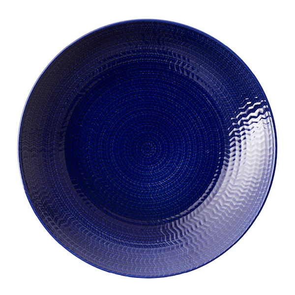 Rörstrand Blå Eld tallrik 23 cm blå är en mångsidig tallrik i fältspatporslin från den klassiska servisen Blå Eld, formgiven av Hertha Bengtson 1951. Serien producerades ursprungligen mellan 1951 och 1971 och relanseras nu i samband med Rörstrands 300-årsjubileum. Den djupblå glasyren i kombination med den karakteristiska fiskbensreliefen skapar ett grafiskt och levande uttryck där mönstrets struktur framträder tydligt.