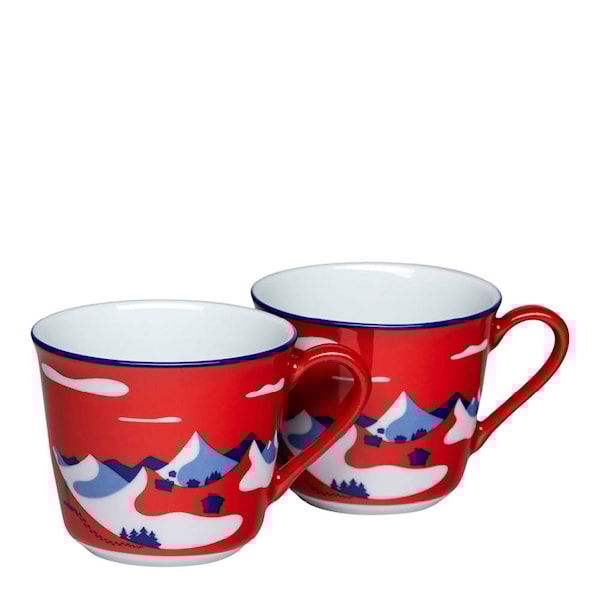 De små glöggmuggarna på 14 cl ligger perfekt i handen och är idealiska för julens glögg, varm cider eller kryddigt te. Den vackra färgsättningen i rött och blått och det unika mönstret är både modernt och traditionellt – lika fin till adventsfikat som på nyårsbordet.