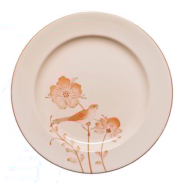 Rörstrand Fågel tallrik 27 cm Jubilee är en större tallrik som kombinerar 300 års designarv med samtida skandinavisk estetik. Den handmålade dekoren med fåglar och blommor är inspirerad av mönster från 1700-talet och återges i en varm karamellglasyr för ett levande uttryck.