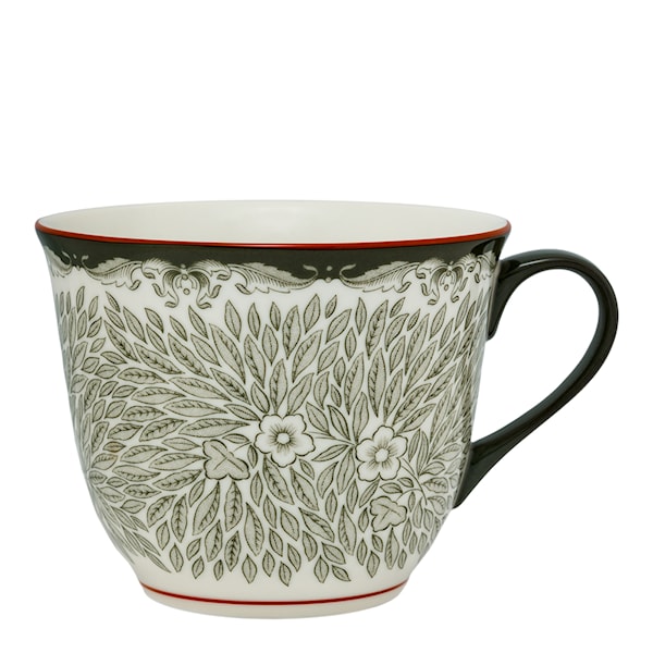 Ostindia Floris mugg 40 cl grön från Rörstrand etablerar ett djärvt intryck på bordet med sitt fängslande gröna bladverksmönster. Det vågade bladverket omsluter muggen på ett graciöst sätt och tillför en touch av sofistikerad elegans. Denna eleganta mugg är perfekt för att servera te, lattes eller varm choklad, och blir ett fängslande inslag i dina bordsdukningar. Ostindia Floris är ett utmärkt val för att skapa en stilfull och inbjudande atmosfär vid varje tillfälle.
