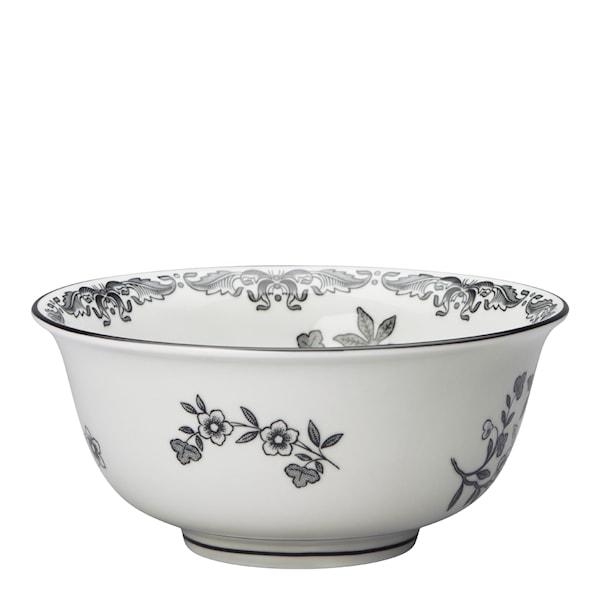 Nu kommer Rörstrands ikoniska serie Ostindia i en sober svart modell! Denna storlek på skål passar utmärkt till frukostflingorna likaväl som till desserten. Tål maskindisk och mikrovågsugn.
