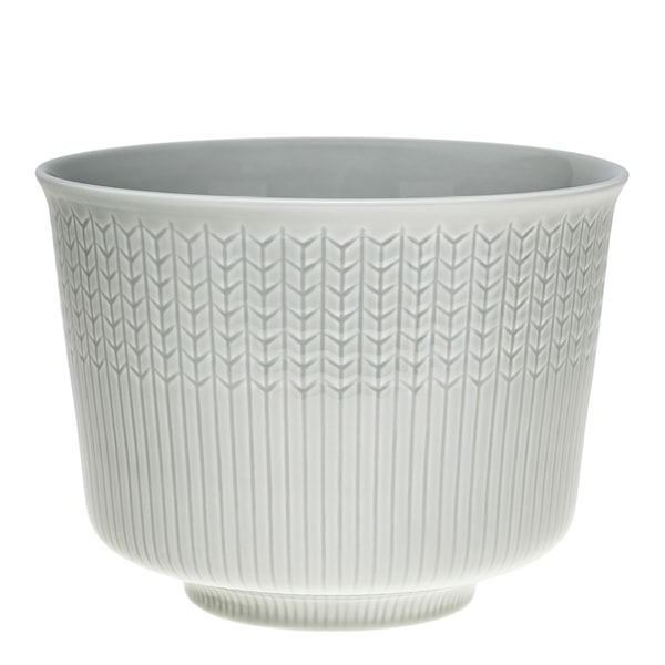 Swedish Grace blomkruka från Rörstrand, med måtten 20x15 cm är ett raffinerat val för större växter. Veteaxmönstret, som har varit en del av Swedish Grace sedan lanseringen 1930, ger ett tidlöst uttryck, medan den subtila grå tonen skapar en mjuk och sofistikerad atmosfär i hemmet.
