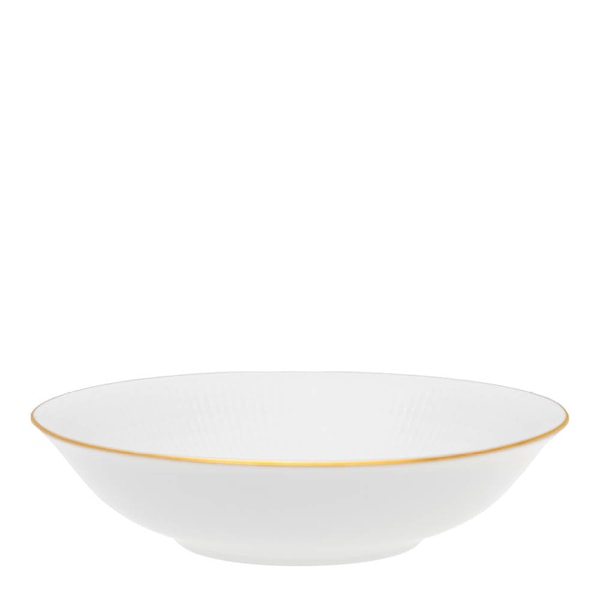 Swedish Grace Gala djuptallrik 19 cm från Rörstrand kombinerar praktisk funktion med tidlös elegans. Den vita porslinsytan är dekorerad med det karakteristiska reliefmönstret och en diskret guldkant som tillför ett sofistikerat uttryck. Tack vare sin djupa form och nätta storlek passar tallriken utmärkt för soppor, sallader eller pastarätter – oavsett om det är vardag eller fest.