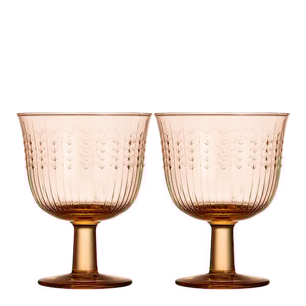 Rörstrand Swedish Grace glas med fot 25 cl 2-pack Jubilee är ett nytt och unikt tillskott i serien, skapat för Rörstrands 300-årsjubileum. För första gången presenteras det ikoniska veteaksmönstret i glas – med räfflad yta och en varm karamellfärg som förmedlar både tradition och nytänkande.