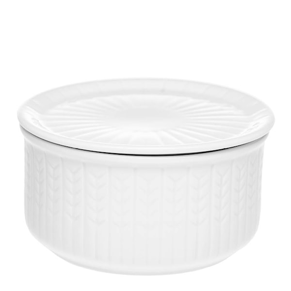 Swedish Grace låg burk S i snö/vit från Rörstrand rymmer 0,3 liter och är en liten men dekorativ lösning för att förvara småsaker med stil. Den låga och kompakta formen gör att den tar minimalt med plats, samtidigt som den tillför rummet ett elegant uttryck. Det karaktäristiska reliefmönstret från Swedish Grace-serien ger burken en klassisk känsla, och den ljusa färgen gör den lätt att matcha med övrig inredning.