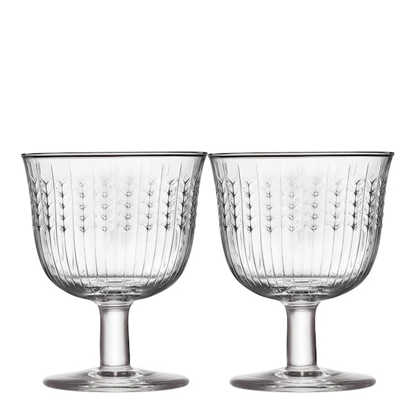 Rörstrand Swedish Grace Vinglas 28 cl 2-pack är eleganta glas på fot, tillverkade i munblåst glas med det karakteristiska reliefmönstret från serien. Med sin höjd på 11,5 cm och en volym på 28 cl är de särskilt väl anpassade för både rött och vitt vin, men fungerar även utmärkt för cocktails eller andra drycker som du vill servera med stil.